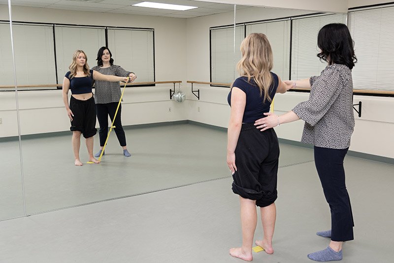 We offer a state-of-the-art, 500-square-foot professional dance studio designed to enhance your rehabilitation experience. Our dedicated dance physical therapists utilize this space to evaluate your progress in a realistic setting. They can observe your technique and correct imbalances in real-time, demonstrate safe movement patterns to prevent injuries, and provide immediate feedback on your alignment and posture. This tailored approach allows us to develop performance-specific rehabilitation plans that effectively simulate on-stage or in-class conditions, ensuring you receive the most effective care for your recovery.